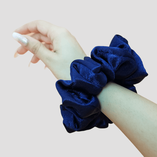 Midnight Blue Satin Silk Scrunchie - Berry Pink Mini Perfume Spray Btl.