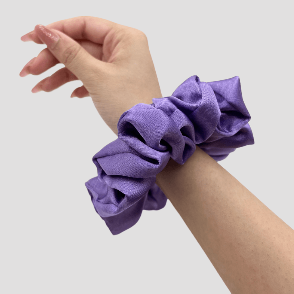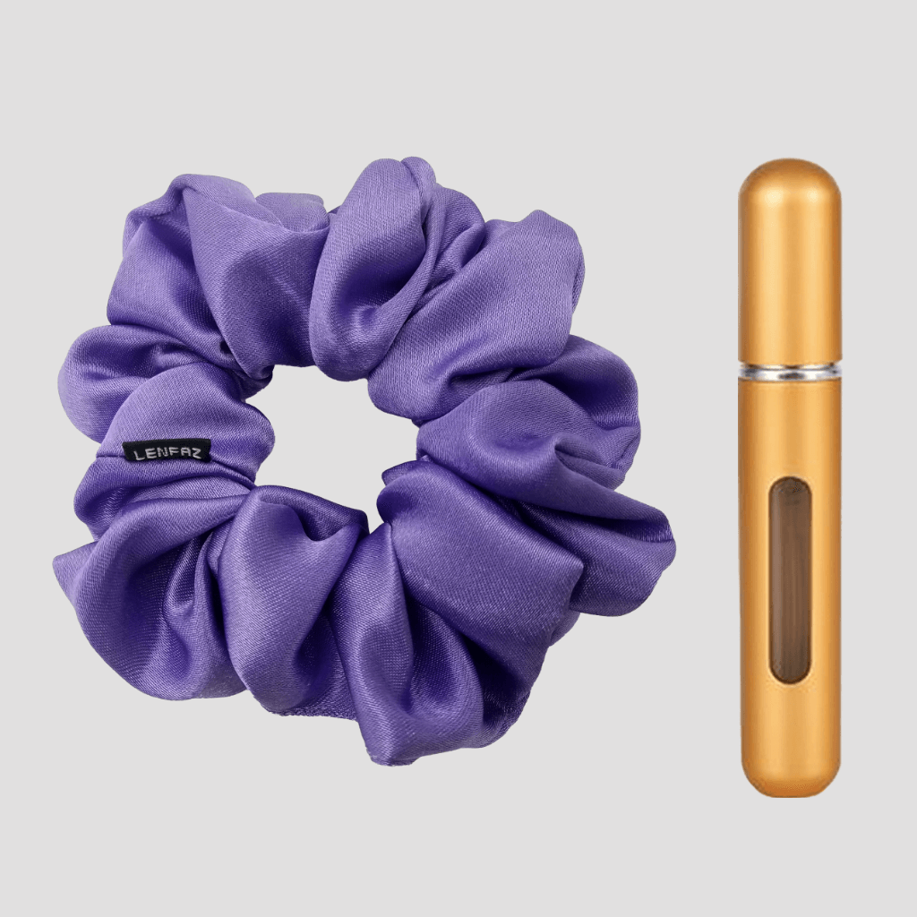 Calming Lilac Satin Silk Scrunchie - Champagne Gold Mini Perfume Spray Btl.