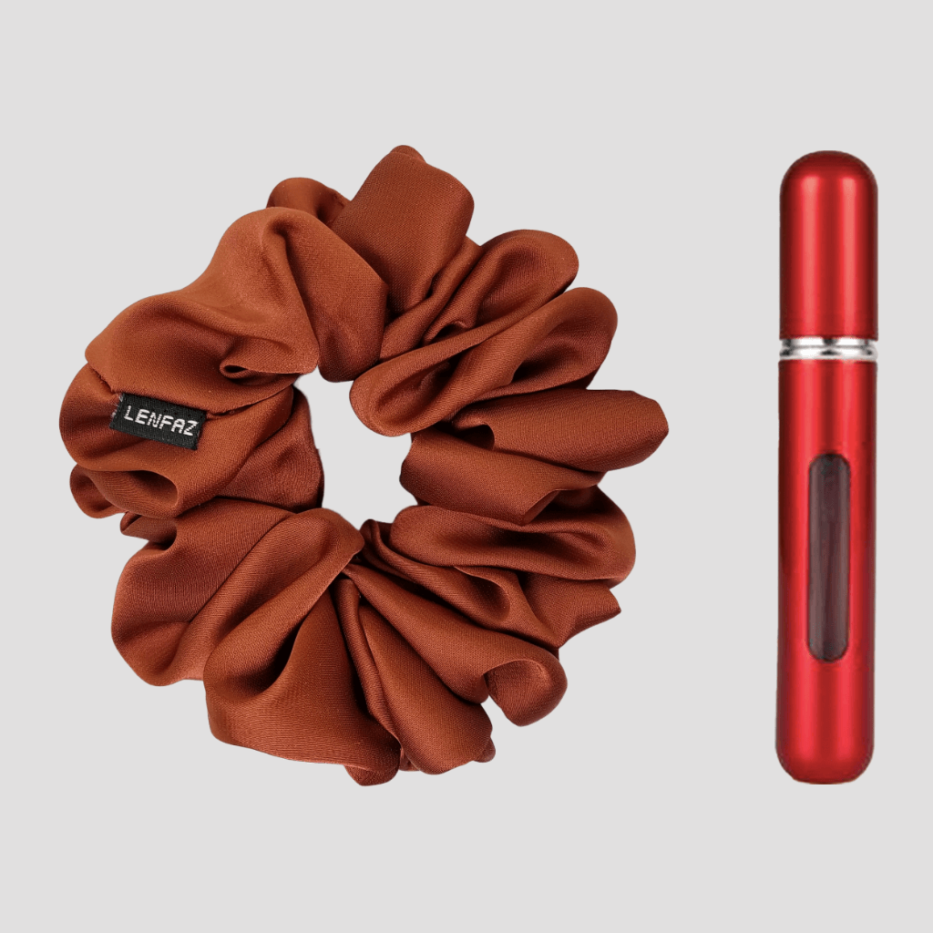 This scrunchie and the mini perfume refillable spray bottle gift set is a perfect combination of fashion and fragrance. The scrunchies are made from high-quality satin silk fabric. The mini perfume spray bottles are refillable, making it convenient for you to fill them with your favorite perfumes.