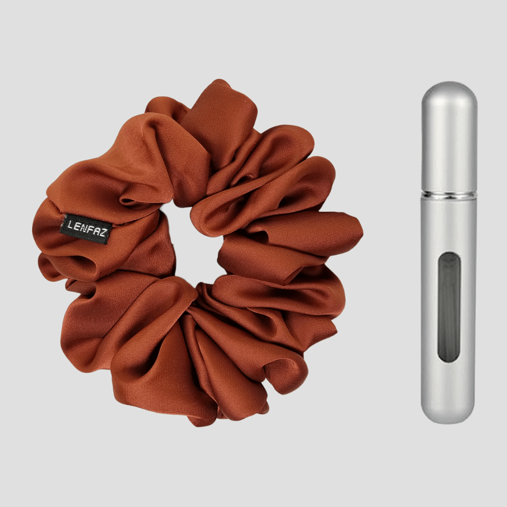 This scrunchie and the mini perfume refillable spray bottle gift set is a perfect combination of fashion and fragrance. The scrunchies are made from high-quality satin silk fabric. The mini perfume spray bottles are refillable, making it convenient for you to fill them with your favorite perfumes.