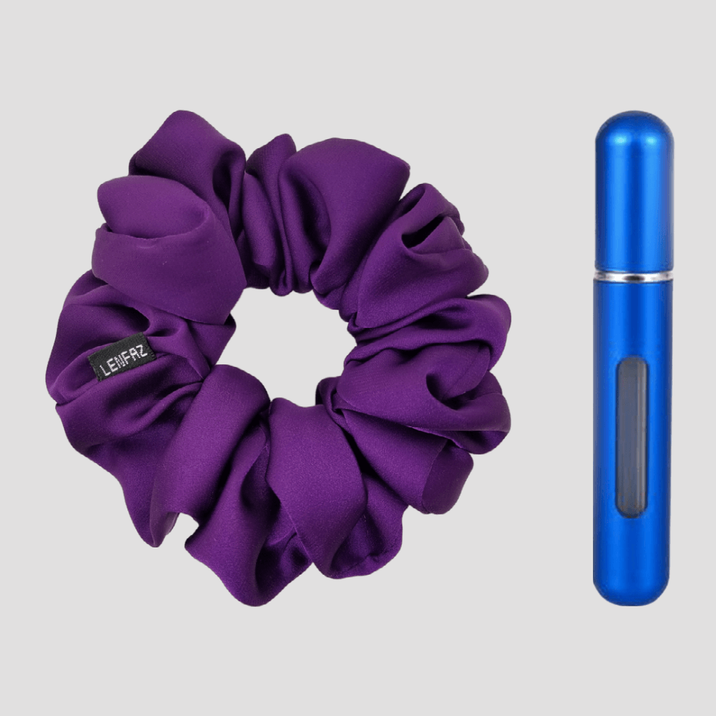 Plum Purple Matte Silk Scrunchie - Royal Blue Mini Perfume Spray Btl.
