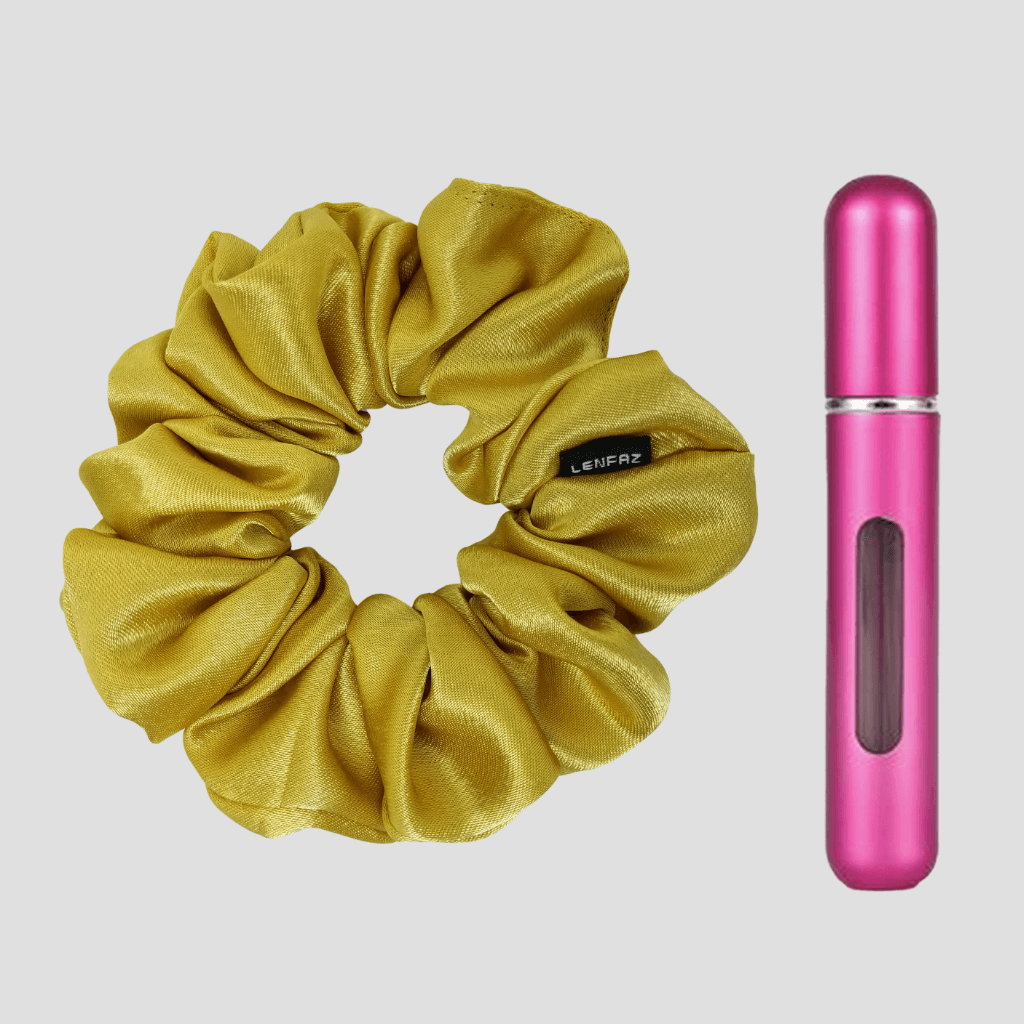 Luxury Gold Satin Silk Scrunchie - Berry Pink Mini Perfume Spray Btl.