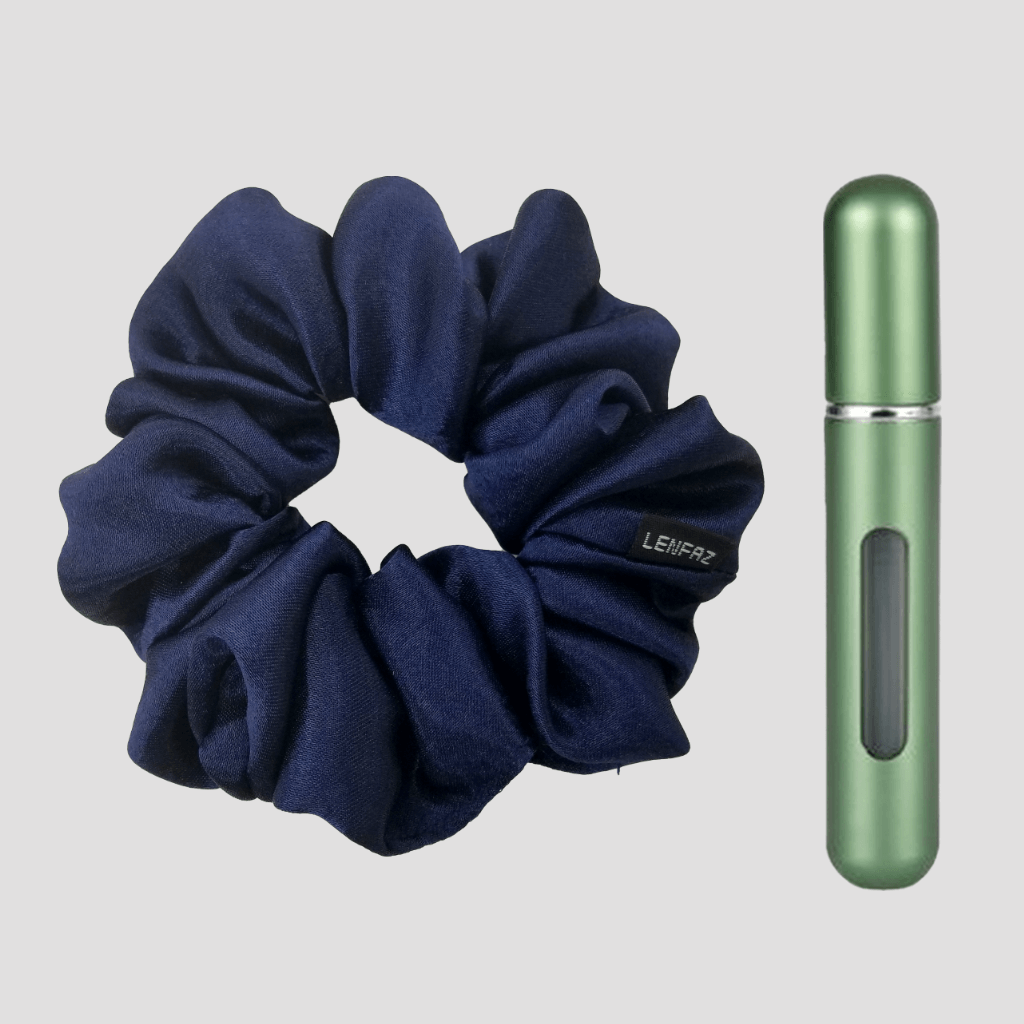 Midnight Blue Satin Silk Scrunchie - Sage Green Mini Perfume Spray Btl.