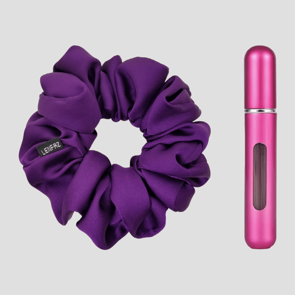 Plum Purple Matte Silk Scrunchie - Berry Pink Mini Perfume Spray Btl.