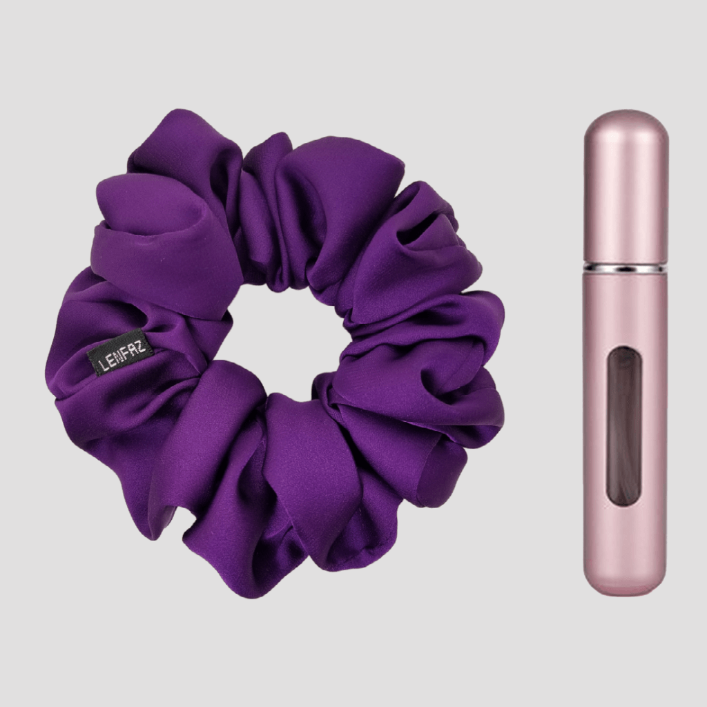 Plum Purple Matte Silk Scrunchie - Light Pink Mini Perfume Spray Btl.
