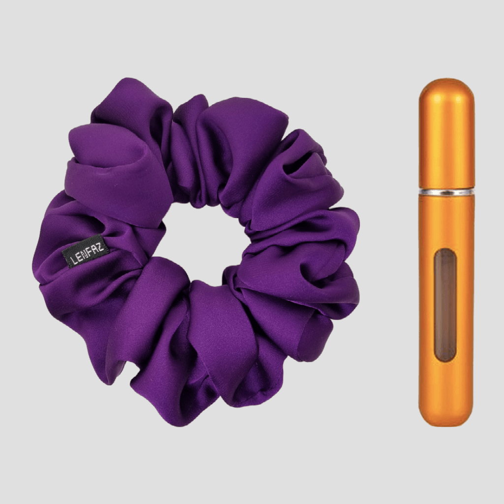 Plum Purple Matte Silk Scrunchie - Sunset Yellow Mini Perfume Spray Btl.