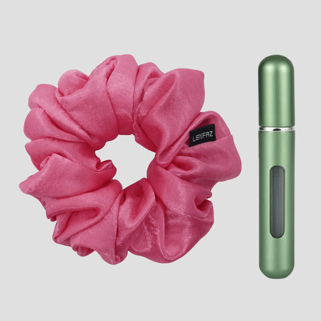 Pretty Pink Satin Silk Scrunchie - Sage Green Mini Perfume Spray Btl.