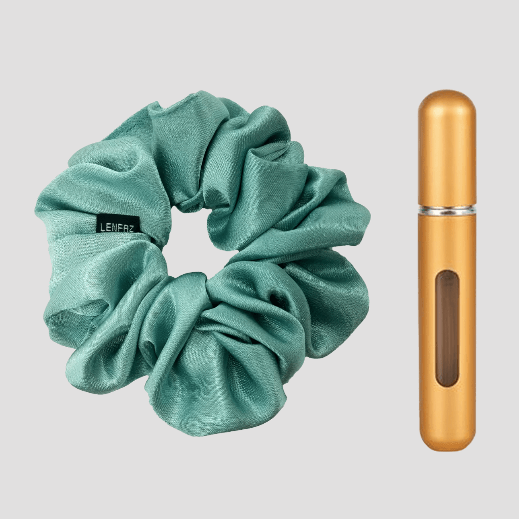 This scrunchie and the mini perfume refillable spray bottle gift set is a perfect combination of fashion and fragrance. The scrunchies are made from high-quality satin silk fabric. The mini perfume spray bottles are refillable, making it convenient for you to fill them with your favorite perfumes.