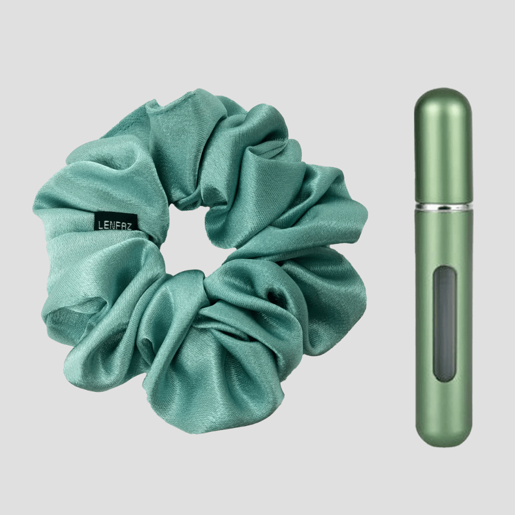 Seafoam Blue Satin Silk Scrunchie - Sage Green Mini Perfume Spray Btl.